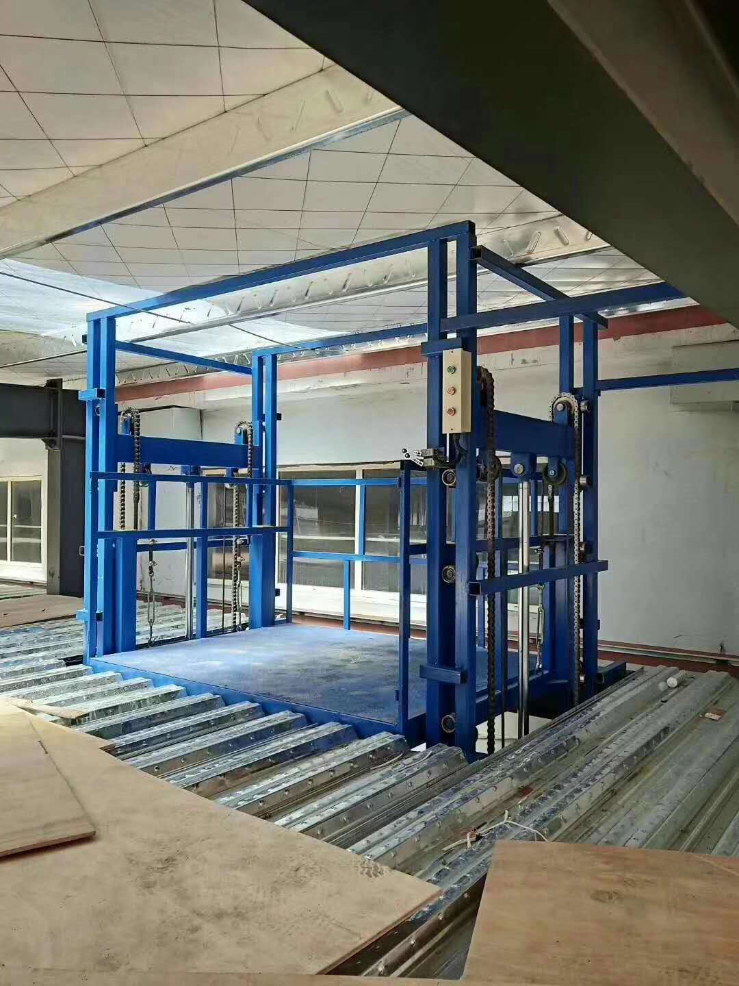 It is droved by the electric and hydraulic system, the lift platform is lifted up and drops down along the truck; it is installed in the pit or the ground floor to convey the goods from one working level to another. The control panels are available at the designated floors and one the lift platforms.